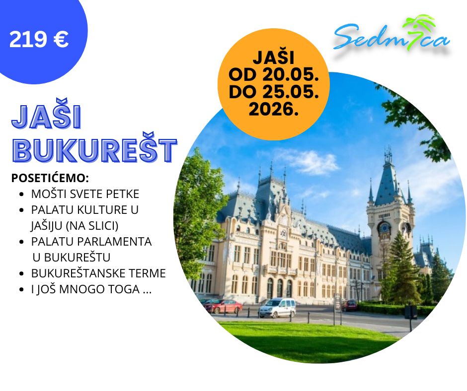 Homepage GRČKA 2026. Putovanja 2026. VIDIN 21.02.2026. OHRID8. MART 05.03./09.03.2026. SEVERNA ITALIJA 05.03./09.03.2026. BUKUREŠT 20.03./23.03.2026. RIMINIUSKRS 10.04./14.04.2026. JAŠIBUKUREŠT 20.05./25.05.2026. SKOPLJE 28.02.2026. SARAJEVOBOSANSKE PIRAMIDE 05.03./09.03.2026. SOFIJA 14.03.2026. KLUŽ 27.03./29.03.2026. BANSKO 30.04./04.05.2026.